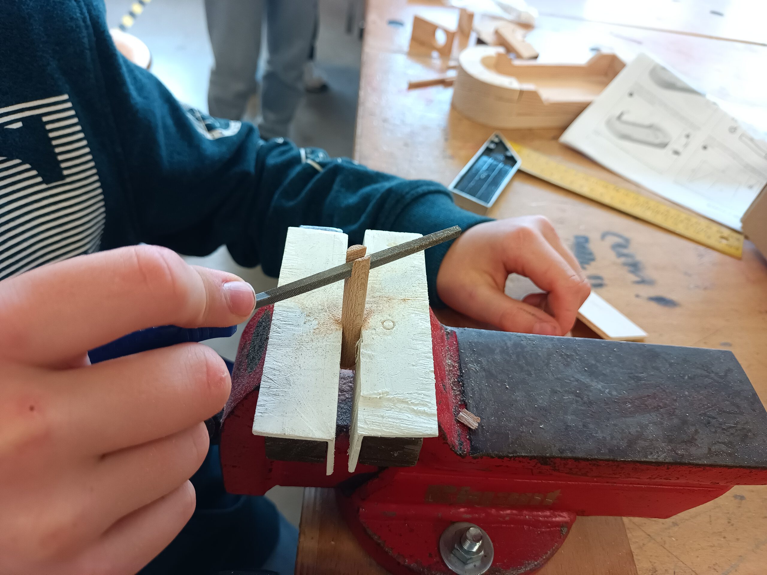 In diesem Schuljahr stellt der Kurs Technik 7 einen Fischkutter aus Holz her. Während der Rumpf aus Kiefer besteht, werden für den Mast Buchenrundstäbe verwendet. Für das Ruder und das…