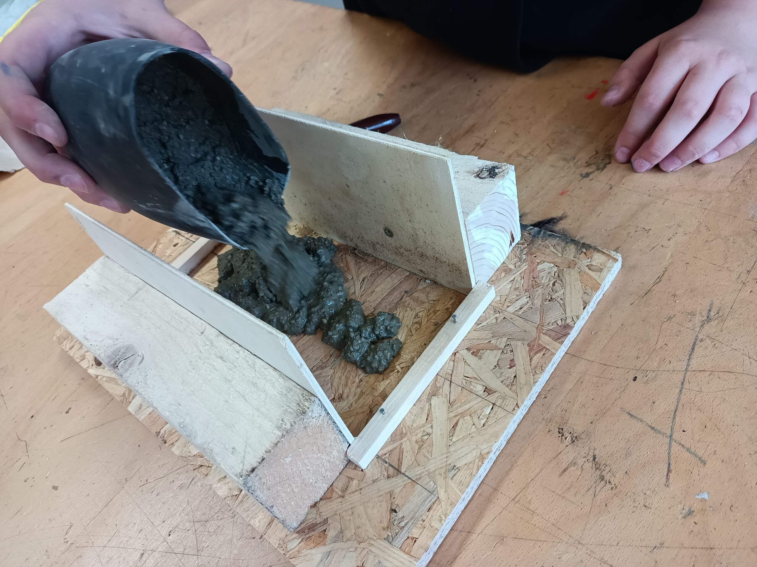 Das Projekt "Römerkanal" hat begonnen: Hier wird das Fundament gegossen. Die seitlichen Holzwangen dienen als Ersatz für die Wände des Kanalgrabens, in dem der römische Kanal aufgemauert wurde.