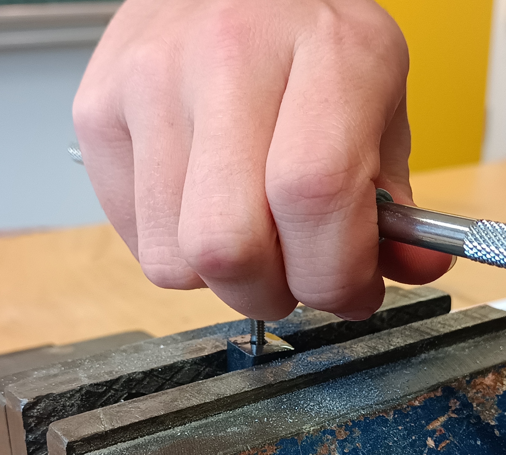 Aus dem Technikkurs 8: Aus einem Alublech wird ein Teelichthalter gefertigt (Malte Lieck).