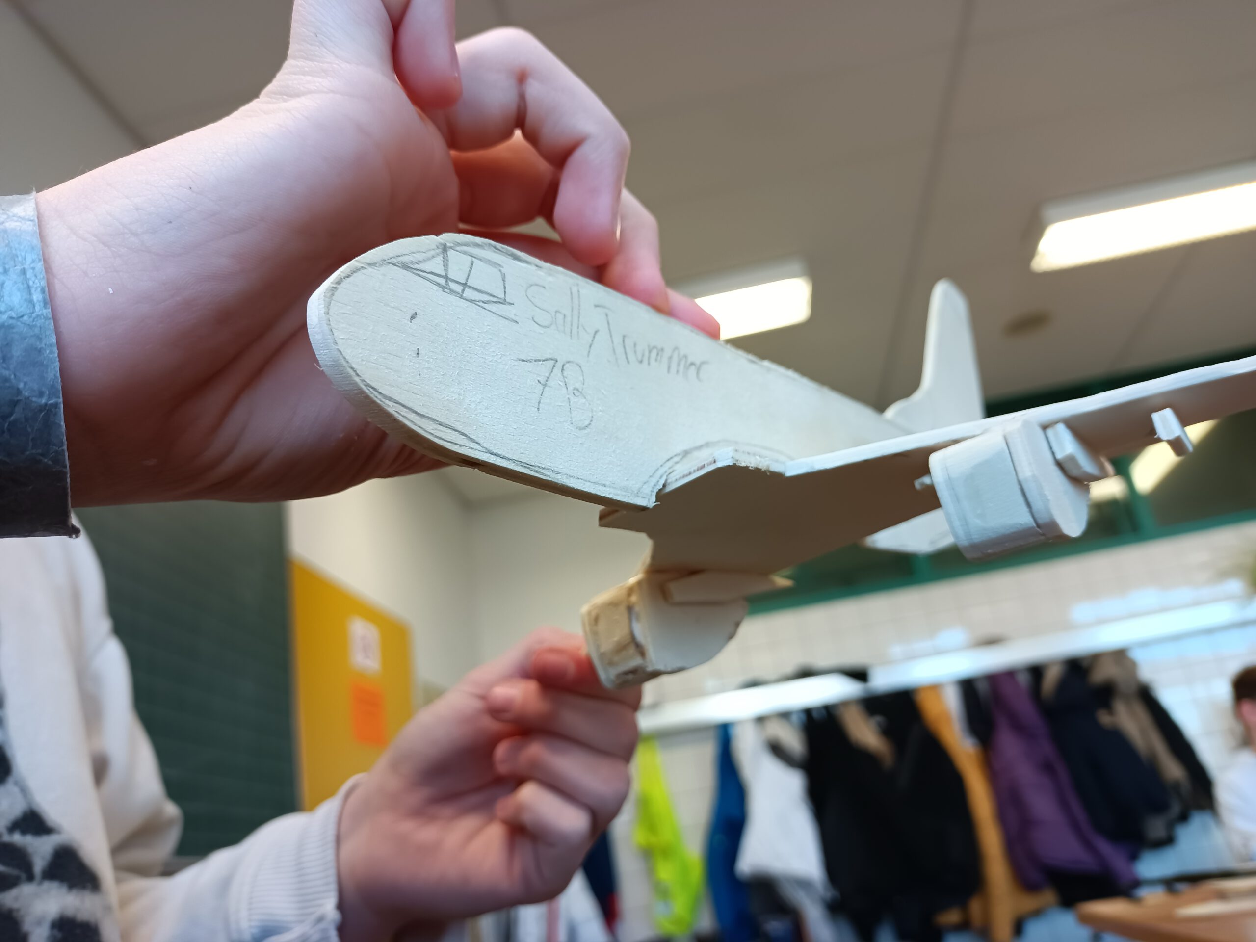 Eine schöne Arbeit von Malte Lieck (Stufe 8): Ein Solarflieger aus Metall und Holz Lötarbeiten in Stufe 9: Wechselblinker- Schaltung