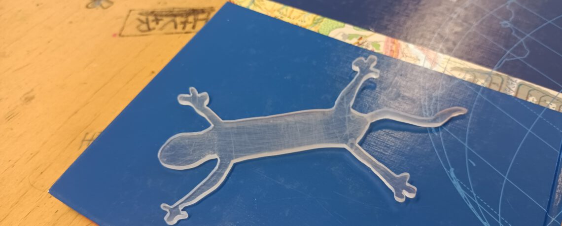 Warmformen von Thermoplasten im Technikkurs 7 über einem heißen Constantandraht. Ergebnis: Ein Stiftehalter aus Acrylglas