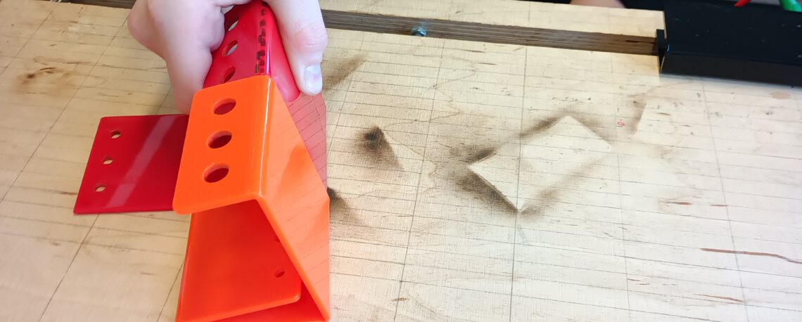 Warmformen von Thermoplasten im Technikkurs 7 über einem heißen Constantandraht. Ergebnis: Ein Stiftehalter aus Acrylglas