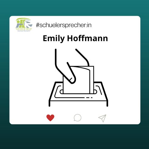 Hallöchen, ich bin Emily und 15 Jahre alt. Ich gehe in die Klasse 9b. In meiner Freizeit spiele ich sehr gerne Tennis und gebe auch Tennis-Training. Ich möchte gerne Schülersprecherin werden, um euch eine schöne Schulzeit in meinem letzten Jahr an der THR zu ermöglichen. Ich bin gerne offen für all eure Anliegen, und ihr könnt mich jederzeit ansprechen. Dankeschön!” 😊